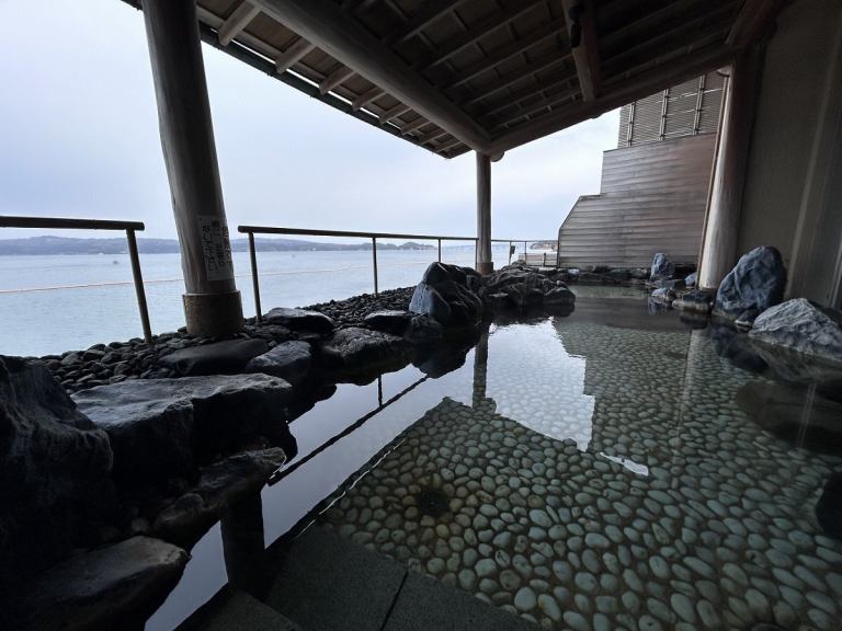 바다가 눈앞! 풍부한 원천을 즐길 수있다! 대욕장 노천탕은 나나오 만 향하고 있습니다.※남성용은 호안 공사에 의해 철거